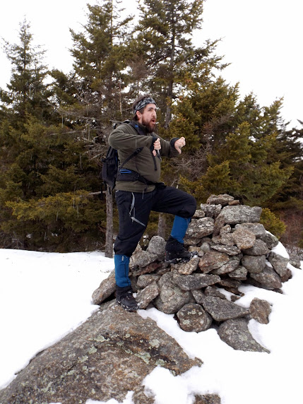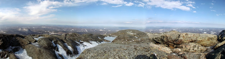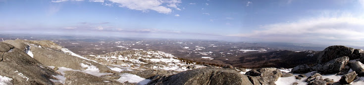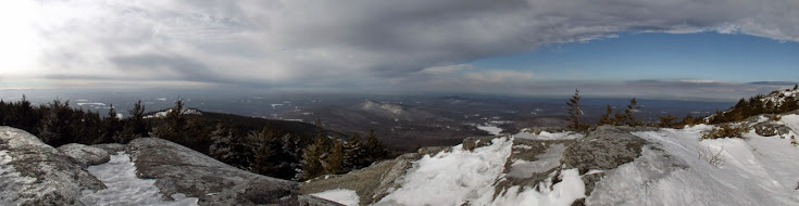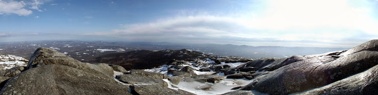 We pretty much decided on doing something in southern New Hampshire as we were pretty tired of dealing with snow, snow and more snow. So after a bit of decision making, we decided on Mount Monadnock located in Jaffrey, New Hampshire. Mount Monadnock,(there is also a Monadnock in Vermont on the west side of Colebrook, New Hampshire) stands at about an elevation of 3165'. It's claim to fame is that it's the second most frequently climbed mountain in the world, after Mount Fuji in Japan. Today, we would be one of the few to be seen on the mountain, possibly because of the high winds which made it colder than it was down lower.