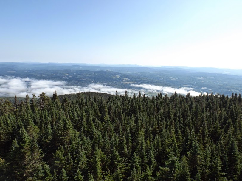 Monadnock Mountain (not THAT Monadnock in New Hampshire) is located in Lemington, Vermont across the Connecticut River from Colebrook, New Hampshire. There is a fire tower on the summit and remains for the old fire warden's cabin are a few feet away.