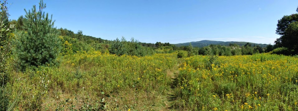 The views from the summit of Prospect Mountain (elevation 2076') are amazing! It was apparently cleared out to make it attractive to a buyer with the intention of selling it as a house lot. Alas no one seems to have bought it, and it seems crazy considering the views.