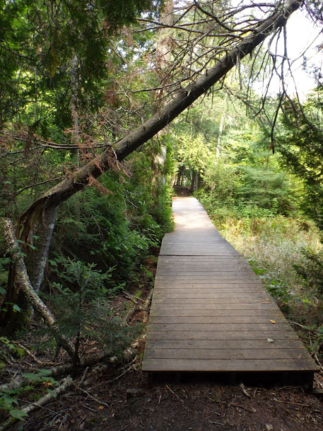 The trail passes into the evergreen forest and becomes more like a real trail.