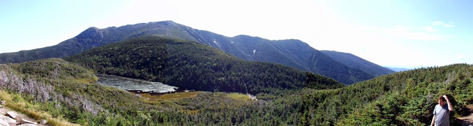 Panorama of Franconia Ridge and Eagle Lake, with some ugly guy in the picture.