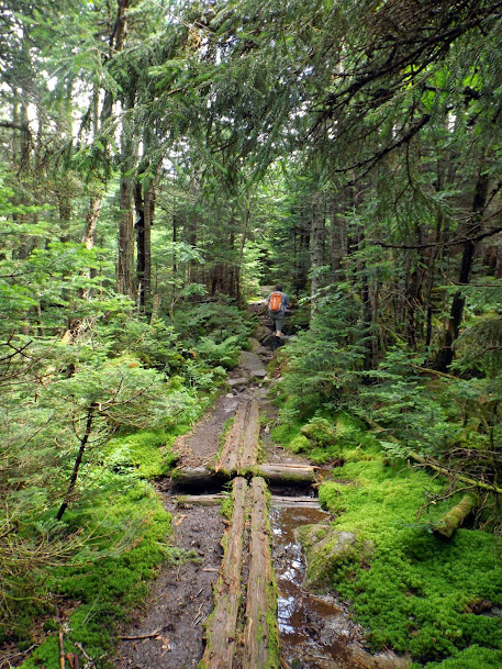 Brian heading down this section of the Garfield Ridge Trail that is pretty much a waterfall with substantial amounts of rain. A few winter's ago, it was a nice wet hike up.