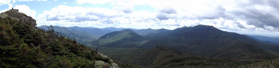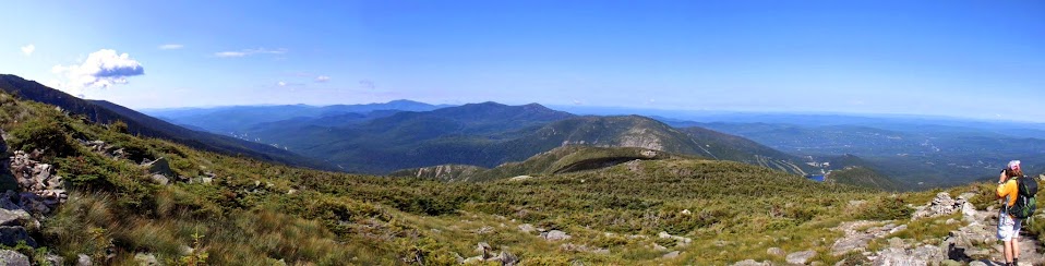 Summit panorama time. Looking down Franconia Ridge with Owl's Head on the left, Flume and Lincoln in the middle, Moosilaukee, the Kinsmans and Cannon to the right.