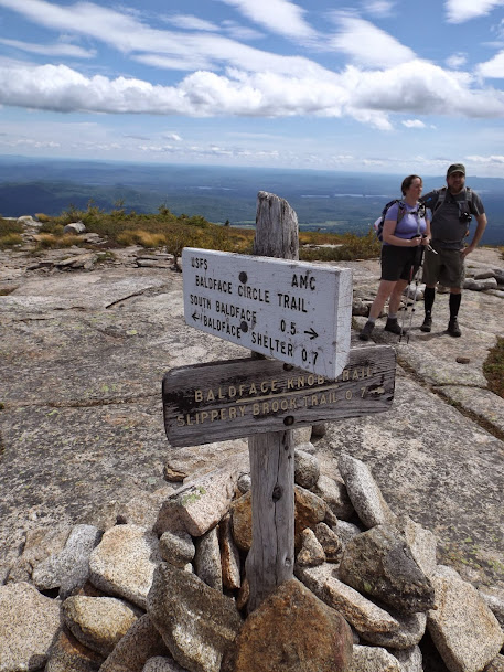 From the Baldface Knob/Baldface Circle Trail junction, Greg and Desi take in the views and check out the climb to come.