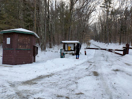 We pretty much decided on doing something in southern New Hampshire as we were pretty tired of dealing with snow, snow and more snow. So after a bit of decision making, we decided on Mount Monadnock located in Jaffrey, New Hampshire. Mount Monadnock,(there is also a Monadnock in Vermont on the west side of Colebrook, New Hampshire) stands at about an elevation of 3165'. It's claim to fame is that it's the second most frequently climbed mountain in the world, after Mount Fuji in Japan. Today, we would be one of the few to be seen on the mountain, possibly because of the high winds which made it colder than it was down lower.