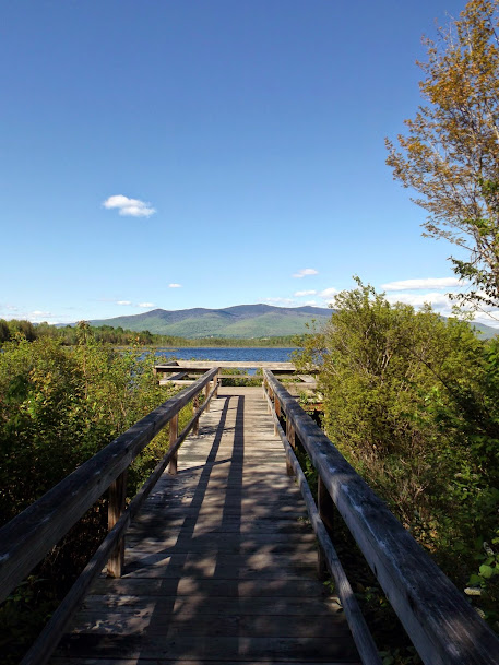 Once we got back to the car, it was time to start heading south again due to the time. Since the day was turning out to be so gorgeous, and looking for some more "easy" miles, we decided to hike out to Cherry Pond in the Pondicherry Wildlife refuge, reknown for its birdwatching and beauty. The Presidential Range sits as a backdrop to this pond, plus a constant presence with the Waumbek Range and glimpses of Mount Martha and the Cherry Range peaks that give his pond it's name also make appearances here and there.