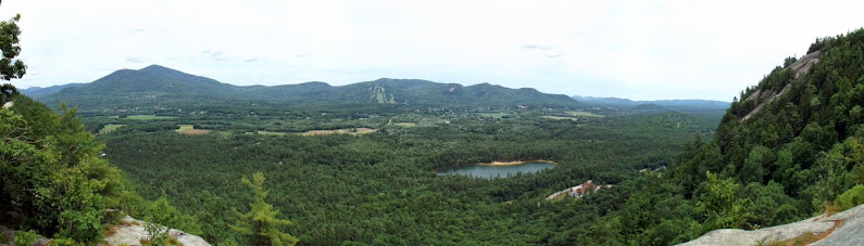 Panorama from just below the summit of Cathedral Ledge (elevation 1159'). It was pretty crowded up here today.